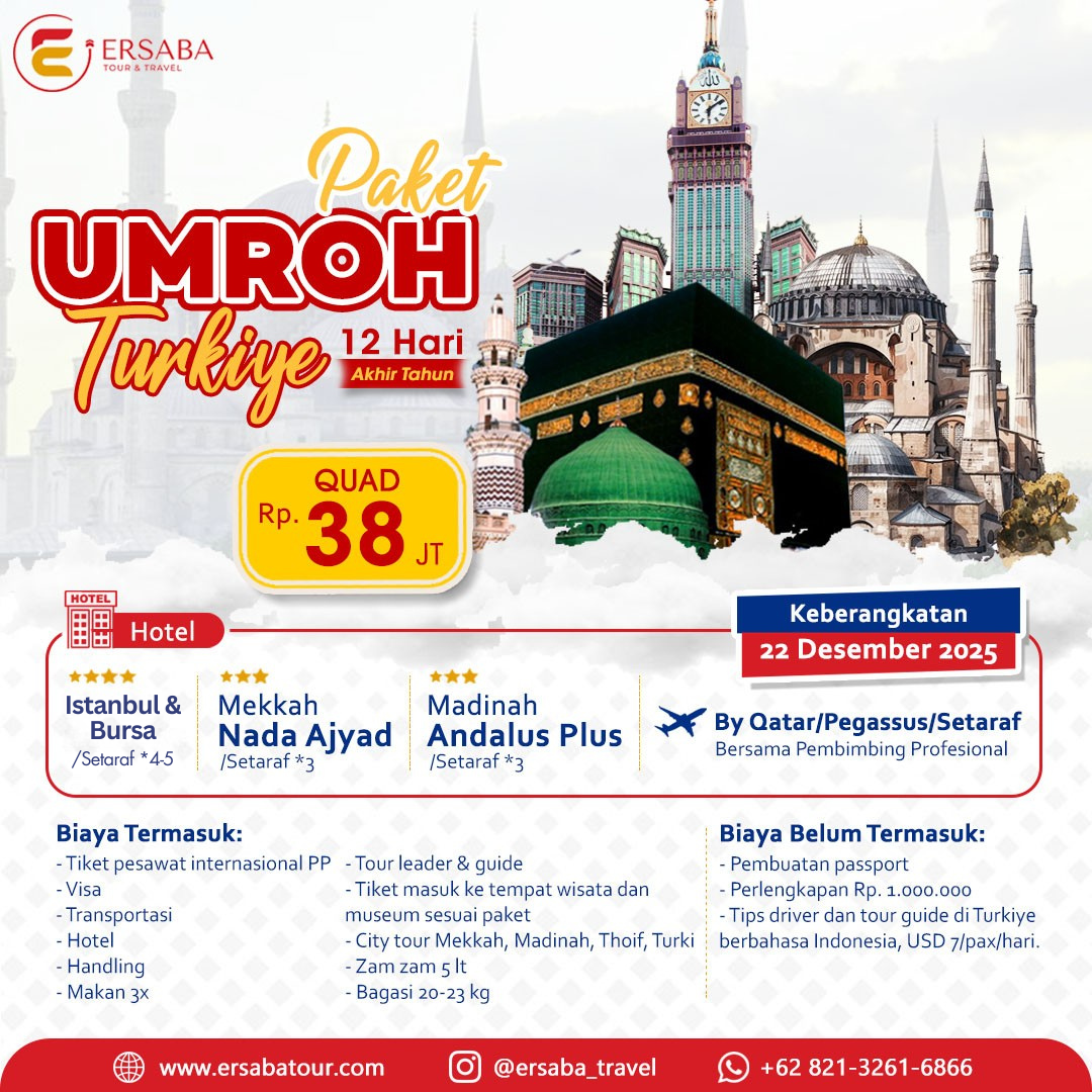 ERSABA Tour & Travel adalah Perusahaan tour travel terpercaya yang mengkhususkan diri dalam menyediakan wisata halal ke berbagai negara. Dengan tim ahli yang akan selalu memastikan perjalanan Ibadah atau Wisata Anda berkesan tanpa rasa khawatir.